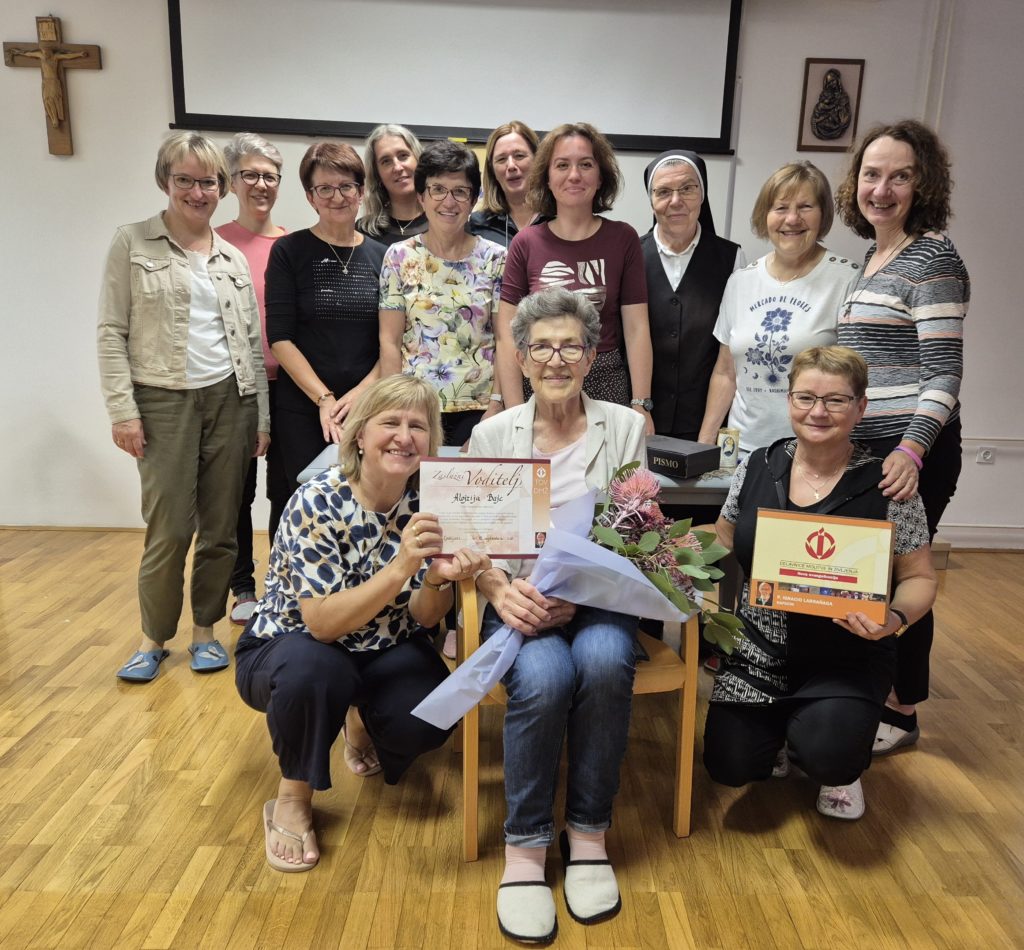 Na mesečnem dnevu Voditelja, v petek, 12.9.2025, smo se Voditelji Delavnic molitve in življenja Lokalne koordinacije Ljubljana- Maribor naši dragi Voditeljici, Lojzki Bajc, zahvalili za dolgoletno predano služenje v družini Delavnic molitve in življenja. Lojzka je svoje življenje in delo v svojem poslanstvu v Delavnicah, darovala kar 23 zaporednih let. Bila je tudi lokalna koordinatorka. V času vodenja Delavnic je udeležencem zvesto in ponižno oznanjala in predstavljala Jezusa Kristusa, našega Odrešenika in prijatelja. Božjo ljubezen je približevala srcem udeležencev in njeno pričevanje je bilo rodovitno. S svojim vodenjem je za Jezusa navdušila udeležence, ki so prepoznali v naši duhovnosti tisto vsebino, ki jih je očarala tako zelo, da so postali novi Voditelji.