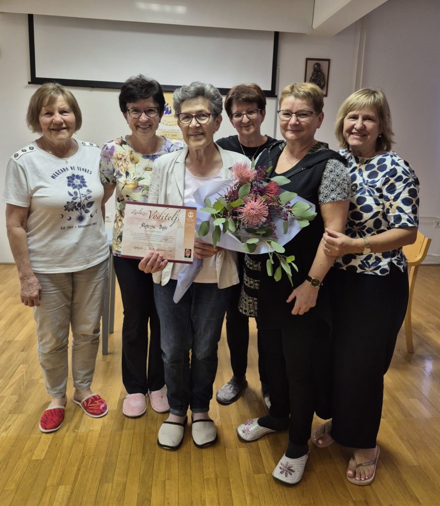 Voditeljici Lojzki smo slovesno izročili plaketo Zaslužni Voditelj in se ji zahvalili za vse njeno zvesto in rodovitno delovanje v družini DMŽ.
